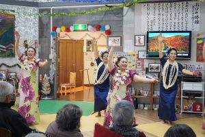 慰問には、「イセフラ」ハワイアンダンスチーム様などお迎えし、寒さも吹き飛ぶ